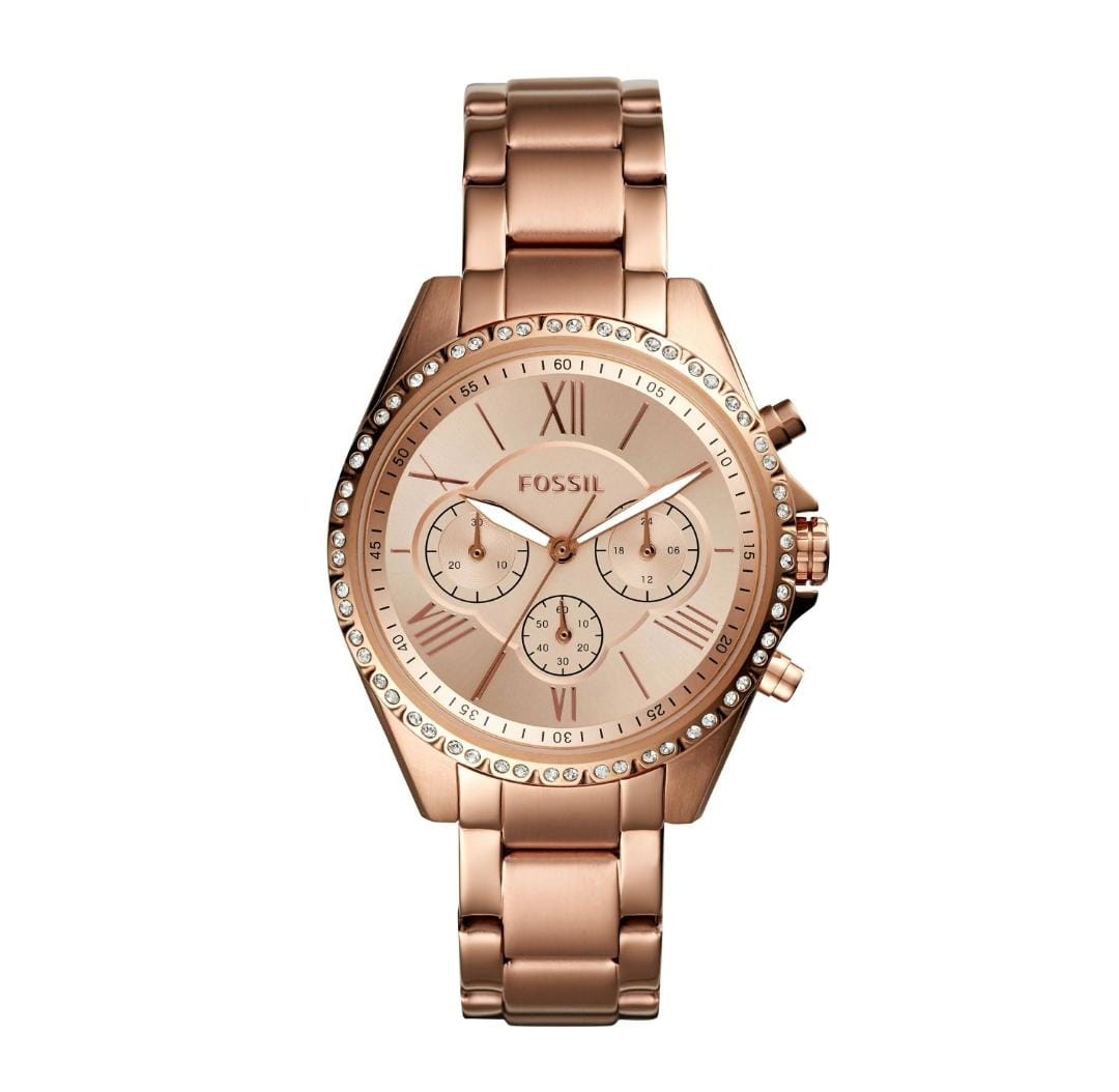La Fossil BQ1774 est une montre quartz femme à l’esthétique raffinée, entièrement plaquée or rose doré. Elle arbore un cadran assorti ton sur ton, conférant une allure soignée et unifiée.