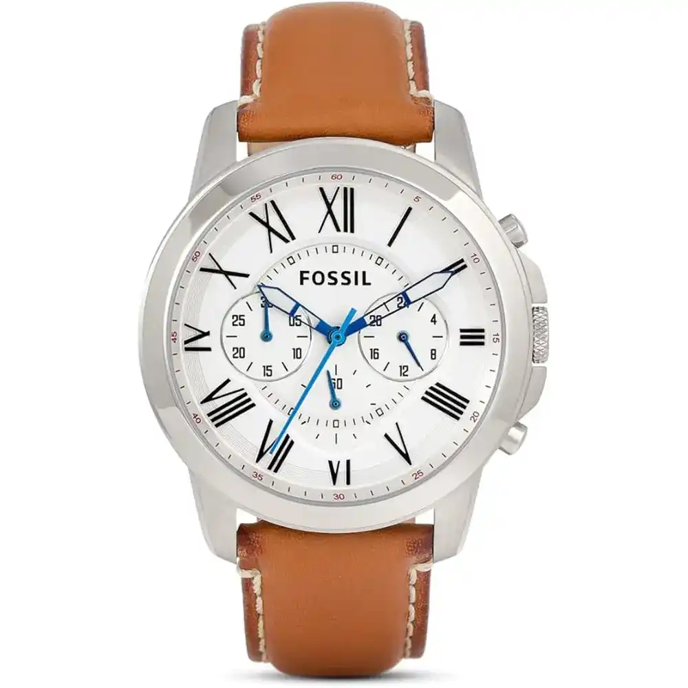 Montre Fossil FS5060 cadran blanc bracelet en cuir marron